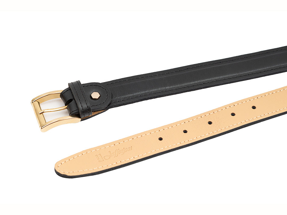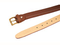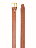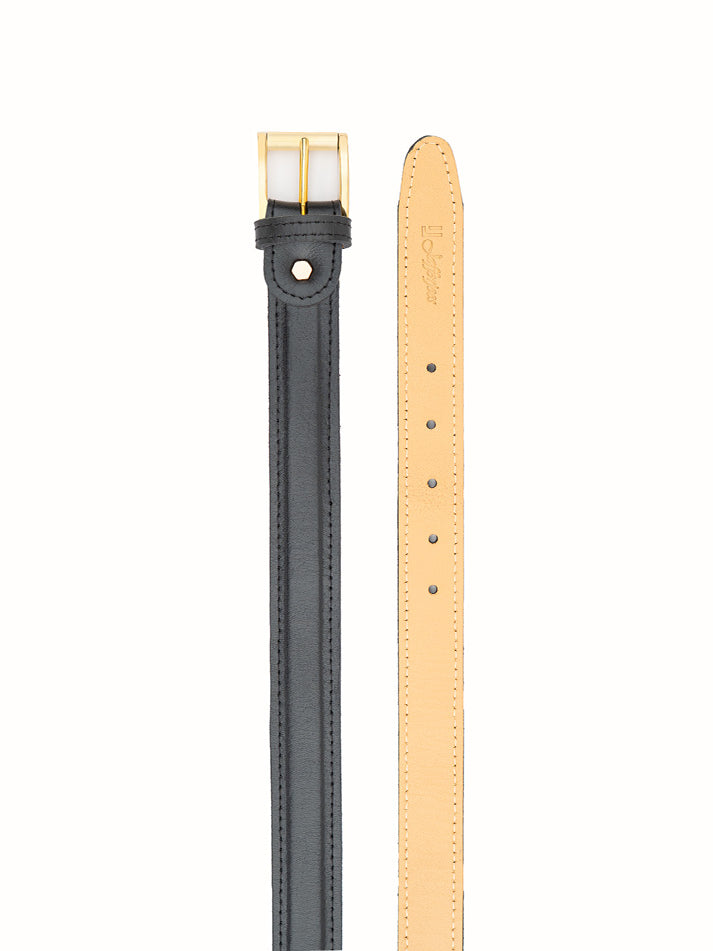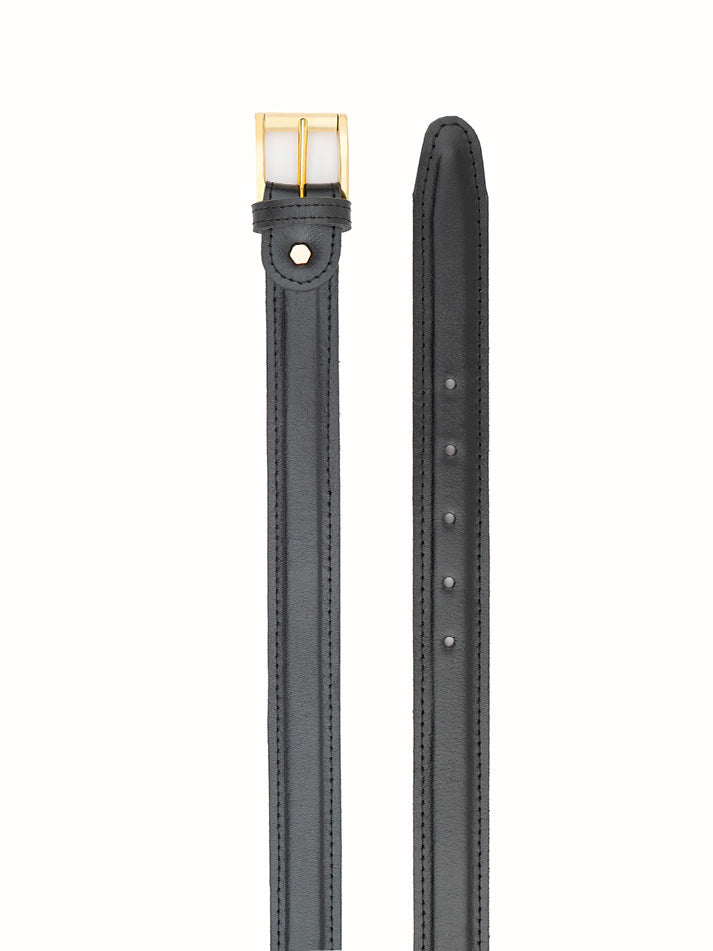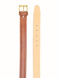 This belt showcases a sleek brass buckle, offering timeless style that transitions effortlessly from workday to evening wear.FEATURES: