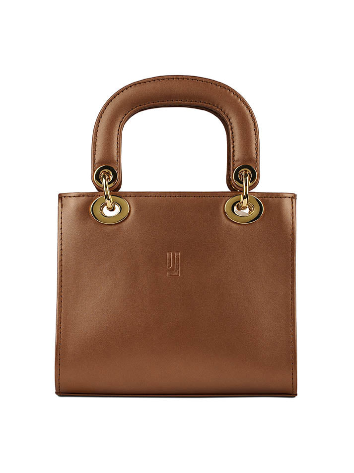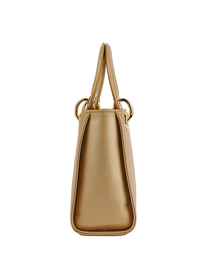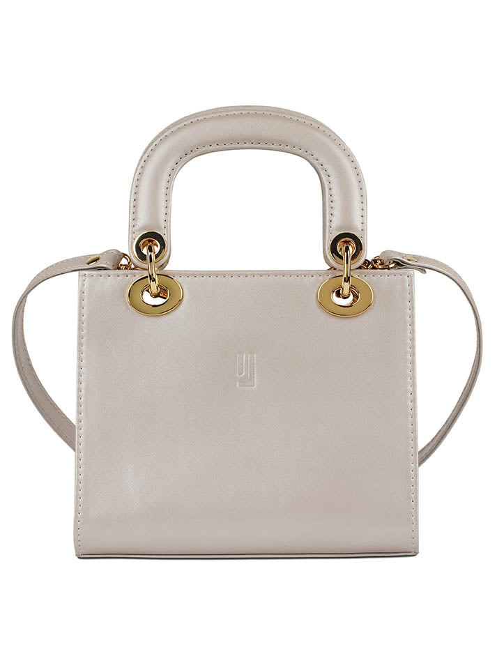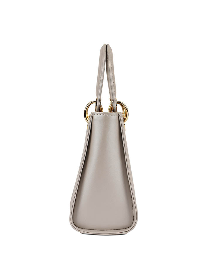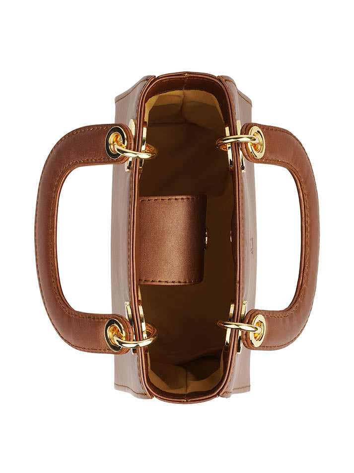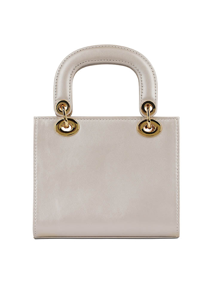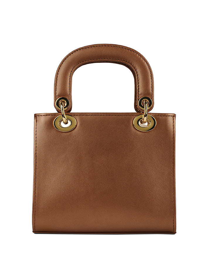 Crafted in luminous metallic leather with refined structure. Features dual handles and a detachable strap for versatile styling.FEATURES:
