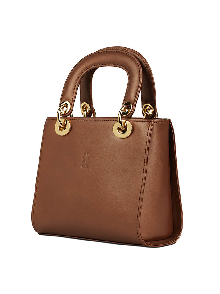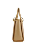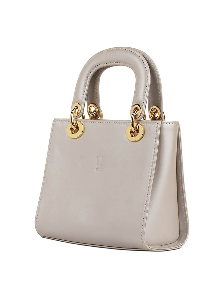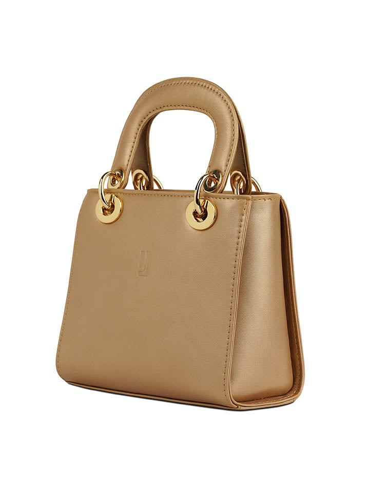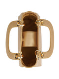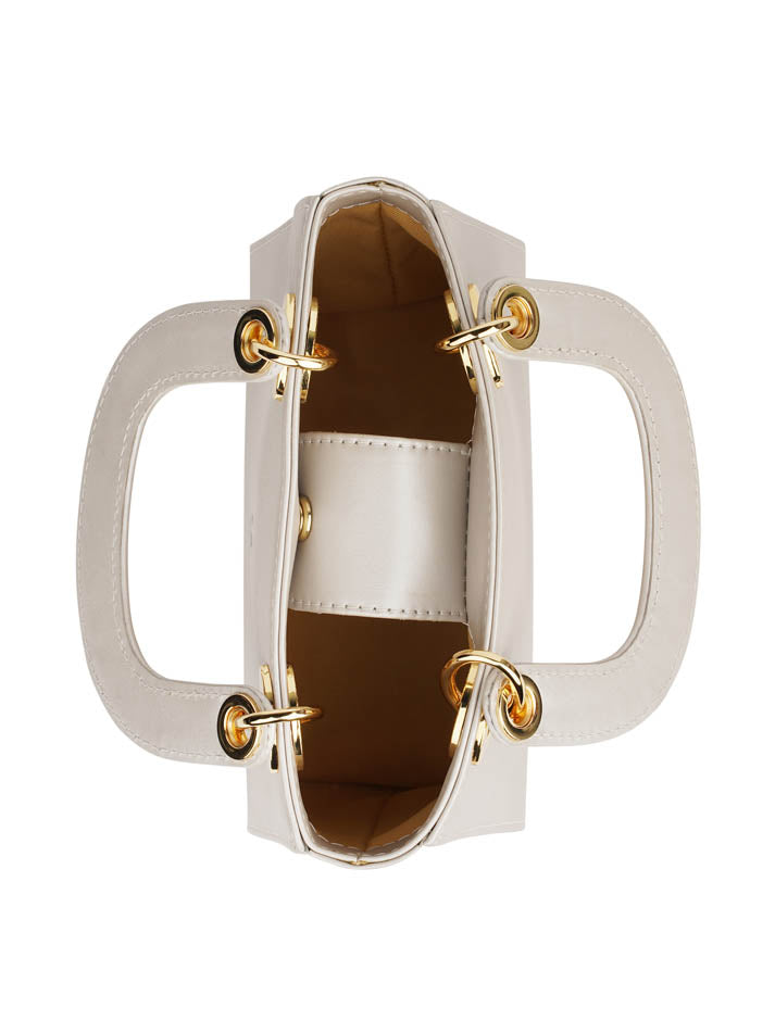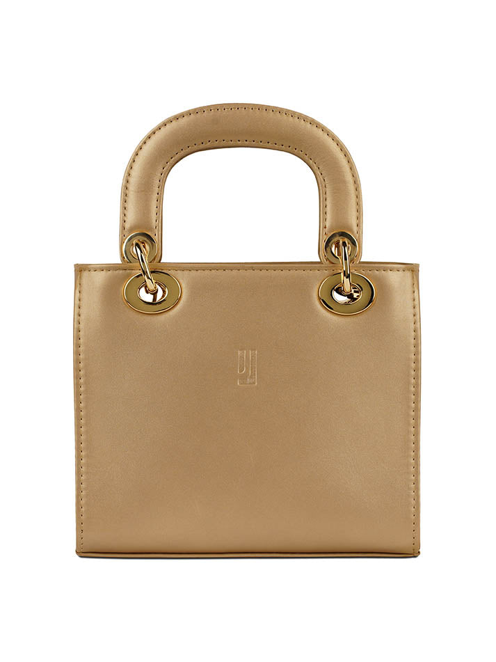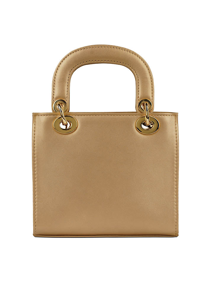 Crafted in luminous metallic leather with refined structure. Features dual handles and a detachable strap for versatile styling.FEATURES: